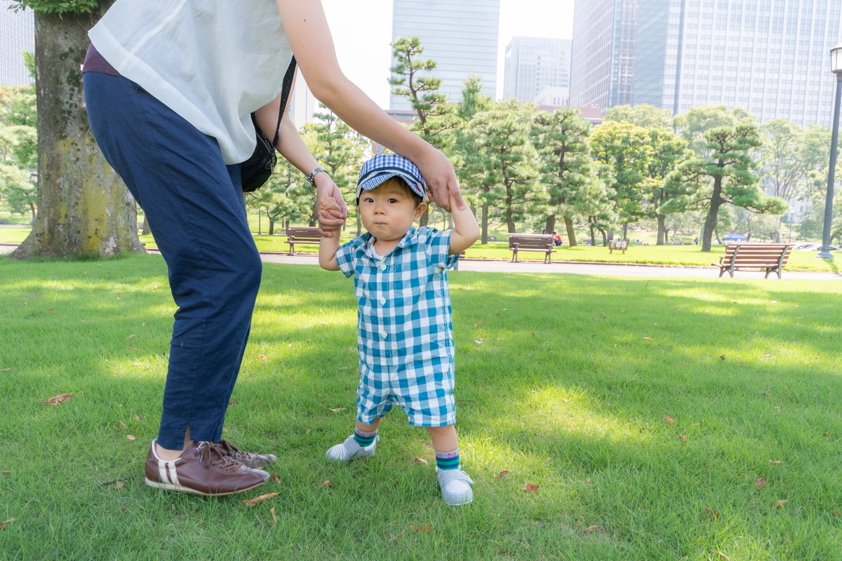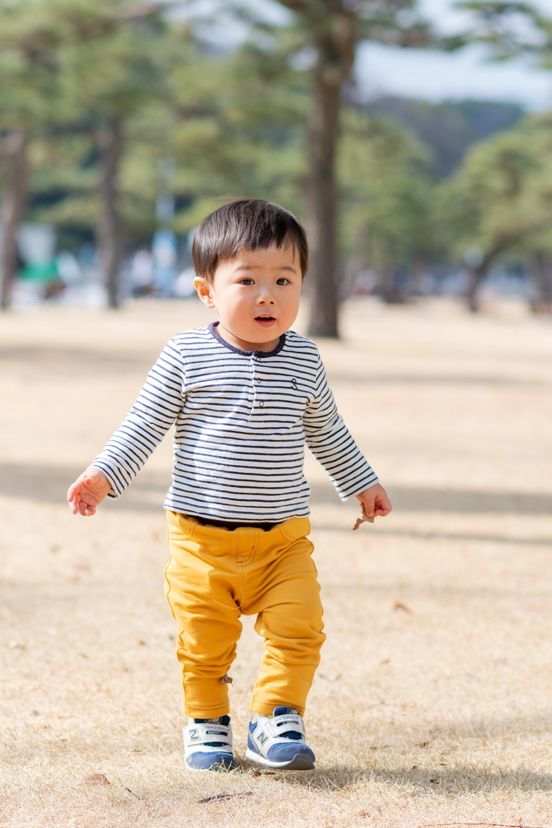 歩く練習をしたり、ピクニックしたり、芝生で寝転がって遊んだり。皇居外苑は子供連れで遊ぶのに最適な公園です。次は桜を見に行くぞー!