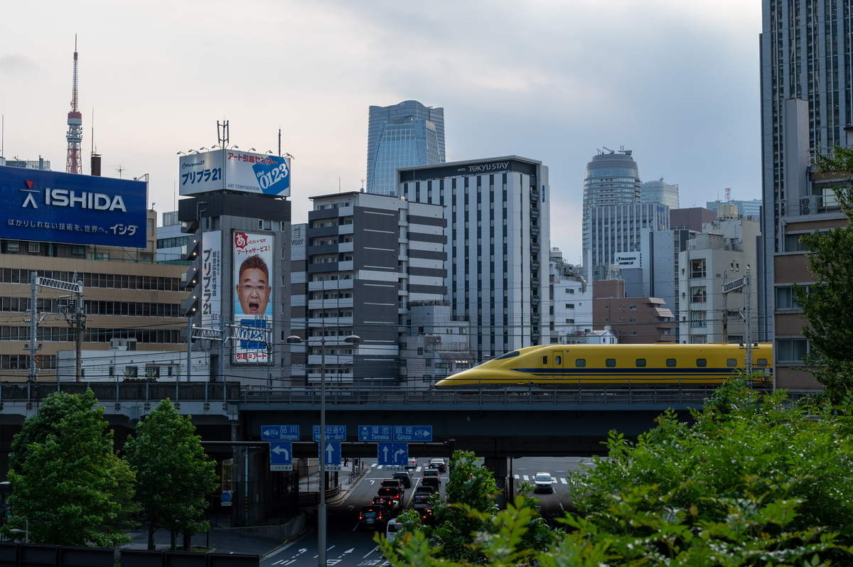 望遠で新幹線とビル群だけを切り取ってみたり。レンズとポジションを変えると構図にもバリエーションが生まれます。